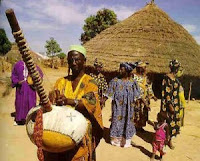 Foi quando um homem que tocava sua kora na floresta, afinando as cordas sobre a maravilhosa cabaça e extraindo as mais belas harmonias com seu instrumento, foi surpreendido por uma rajada empoeirada de vento e respirou os pequenos grãos de poeira que sobraram do corpo do caçador. Em seguida, o homem começou a cantar e a se acompanhar com a kora; e as canções e histórias, que saiam de seus lábios, cheias de imagens e flores, fizeram com que todos de sua aldeia, que o ouvissem, se pusessem a chorar: alguns de tristeza, outros de alegria, outros com intensa saudade. E todos, sem saber, ao certo, a razão disso. Por isso, deixaram-no viver. Pois é dessa forma que nasceu o griot.